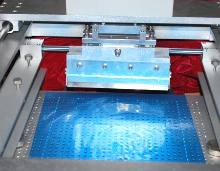 最大鋼板尺寸:350*450mm,模板框架寬度可調(diào),四點定位平面,保證PCB板和模板的水平度。