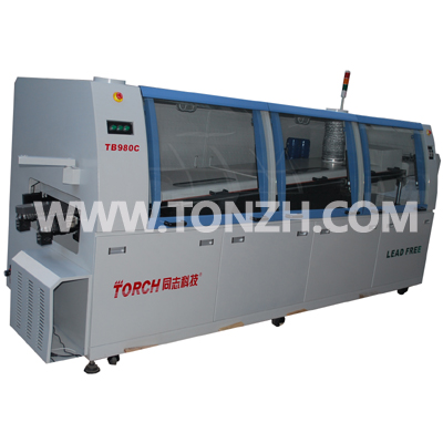 無鉛波峰焊機TB980C,同步進板傳支系統(tǒng),采用與鏈爪同步鏈條式設(shè)計、耐用、無噪音,傳輸平穩(wěn)?刂葡到y(tǒng),工業(yè)窯計算機,信號耳聞處理,系統(tǒng)穩(wěn)定可靠。遠紅外預(yù)熱補系統(tǒng),防止溫度下降。采用新型增壓式助焊劑涂覆系統(tǒng),越冬霧化均勻,有效減少助焊劑用量。運輸系統(tǒng)采用進口馬達傳動,并裝有過載保護器。基板寬窄采用電腦控制自動調(diào)整,方便可靠。